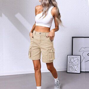 Brand New Bermuda Cargo Shorts Women High Waist Khaki Medium