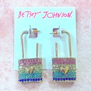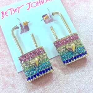 Brand New Betsey Johnson All You Need is Love Locket Crystal Rainbow Drop Earrings. Gorgeous!