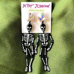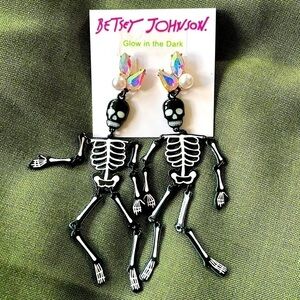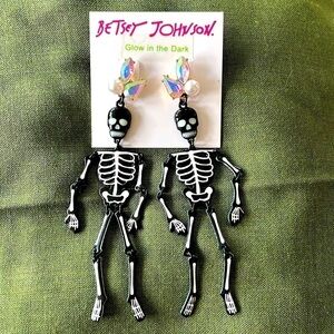 Brand New Betsey Johnson Halloween Skeleton Glow in The Dark Drop Earrings. So cool and eye-catching!