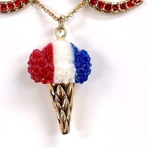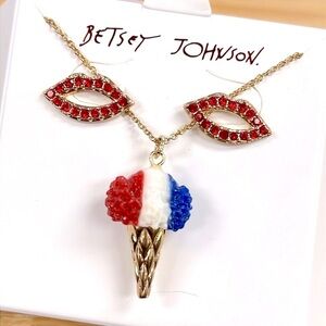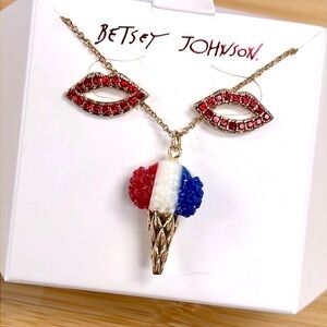 Brand New Betsey Johnson Patriotic Ice Cream Cone Necklace Red Lips Earrings Set. Love the red, white and blue! No box. So pretty for summertime!