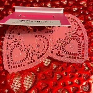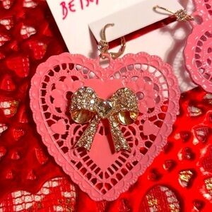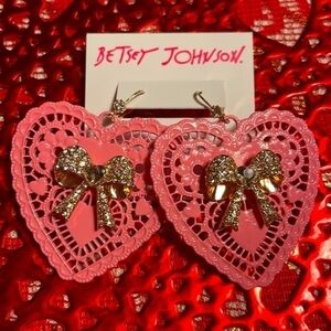 Brand New Betsey Johnson Valentine's Day Heart Shaped Doilies Drop Earrings Bows. So pretty & festive! Perfect for Valentine's Day!