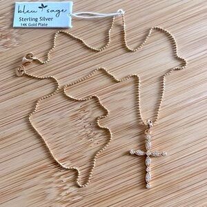 Brand New Bleu Sage 14K Gold Plated Sterling Silver 18" Chain Cross Necklace. Just stunning!