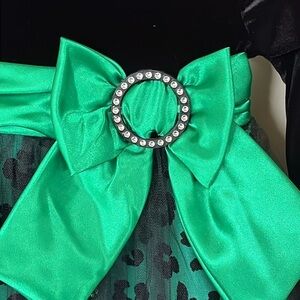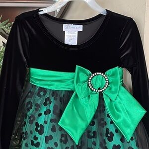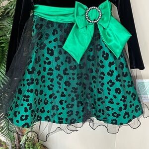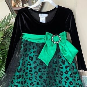 Brand New Bonnie Jean Black Velvet & Green Leopard Print Bow Formal Dress. Girls size 4. So cute!