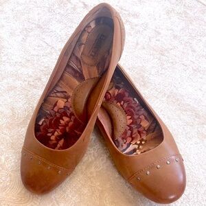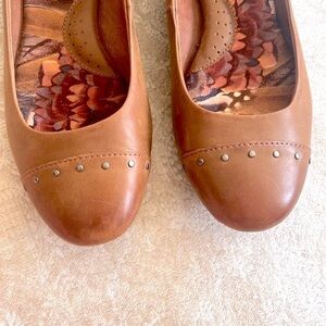 Brand New Born Genuine Leather Ballet Flats Cap Toe Antique Gold Tone Studs. Women's size 8.5. No box. Comfortable career classic! Great for weekends or the office!