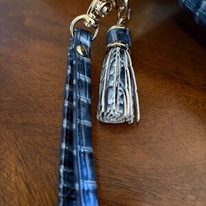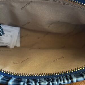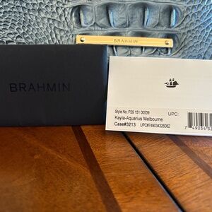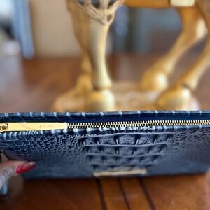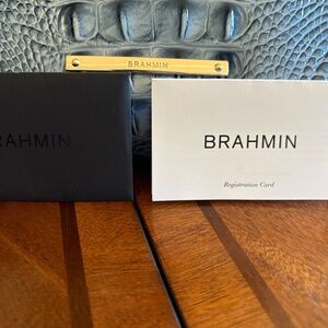 Stunning authentic Brahmin wristlet in a rich steel blue croc-embossed leather. Includes Brahmin registration/authenticity card. This piece has never been worn, shows zero signs of use, and comes with the original Brahmin registration card for authenticity.