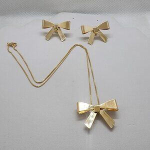 Brand New Brazilian 18k Gold Filled Bow Earrings and Necklace Set
