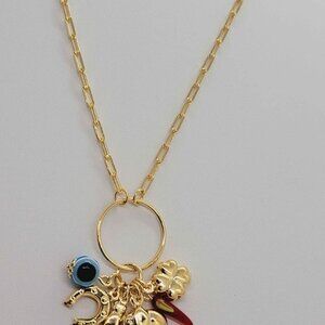 Brand New Brazilian 18k Gold Filled Evil Eye With Multi Charms Necklace