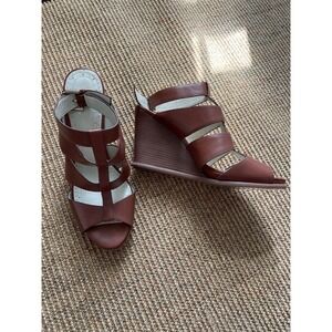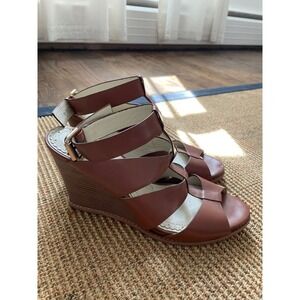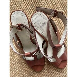 Brand New Brooks Brothers Leather Strap Wedge Sandals - US W8.5 - Cognac