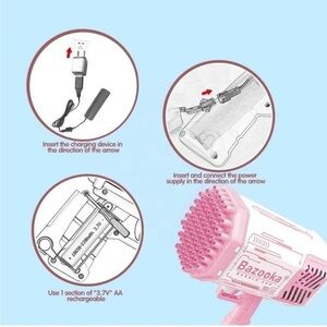 Brand New Bubble Machine Gun Toy Pink Colorful Lights Rechargeable Batteries