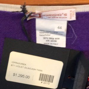 70% Kashmir/30% Silk, never worn with tags from Giorgio's of Palm Beach, made in Italy, size 44 in Italian- small