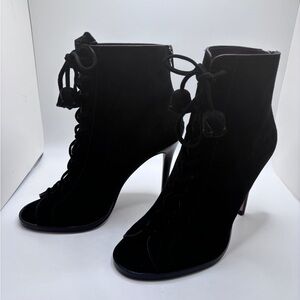 I LOVE these ❤️ 3inch stiletto heel. Lace up boot with suede Roses on the end of the lace! So cute! These are a great classic to add to your shoe collection!!
