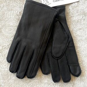 Brand New Calvin Klein Full Grain Goat Leather Tech Gloves Touchscreen Black