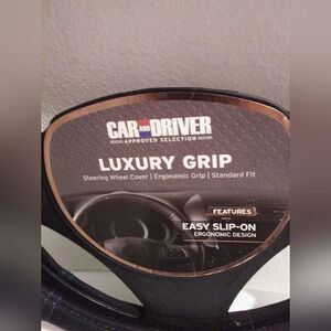 Upgrade your driving experience with this brand new Car & Driver approved Luxury Grip Steering Wheel Cover. Featuring an ergonomic design for maximum comfort, this cover is easy to slip on and fits standard steering wheels. The sleek and stylish design not only enhances your car’s interior but also provides a secure grip for safer driving. Perfect for anyone looking to add a touch of luxury to their vehicle. Brand new with tags, ready to ship!”