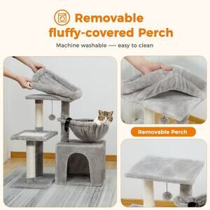 Activity Center: This small cat tree is suitable for multiple cats to play together. The big&soft cat condo provides your kitten a private house to have a rest while the deep cat hammock will be its favorite place to curl up. Not only that,
