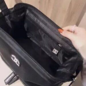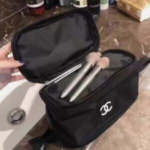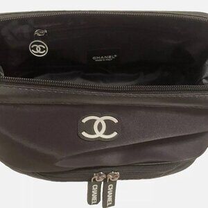 Brand New Chanel Black Nylon Large Makeup Bag/Pouch/Clutch with Wrist St…