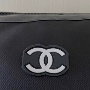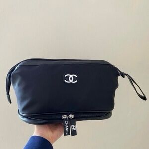 Brand New Chanel Black Nylon Large Makeup Bag/Pouch/Clutch with Wrist Strap