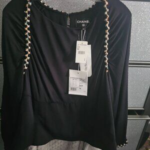 Size 50, beautiful broidery with bones through the torso top. The fabric has a silky feel to it. Estimated retail $2 386.00