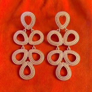 Brand New Chevaux Rose Gold Tone Bold Statement Drop Earrings. 3” Drop. Individually wrapped and placed in velvet drawstring jewelry bag. These are classy & gorgeous!