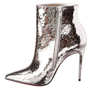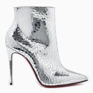 Brand new, 100% authentic Christian Louboutin So Kate 100 Silver Metallic Leather Bootie. EU size 37 (US equivalent size 7B). The photos included are actually taken from the article. There is a small, unnoticeable scratch on the side of the left shoe as shown on the last picture.