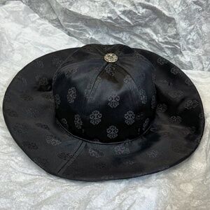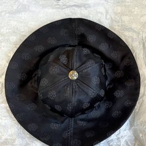 Brand New Chrome Hearts Satin Monogram Bucket Hat Black Silver Cross Top Button