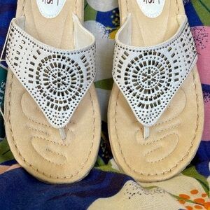Brand New Cliffs Cienna Cushioned Footbed Low Wedge Thong Sandals Stone Design