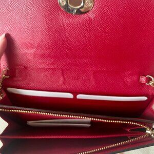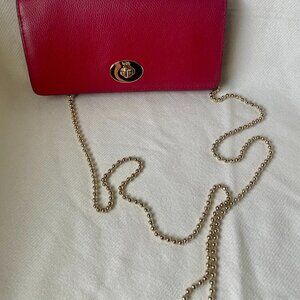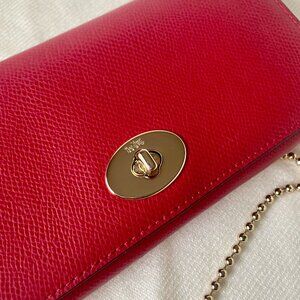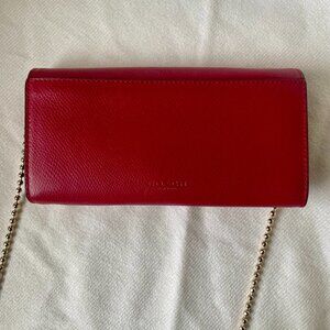 Brand new Coach Envelope Wallet in red and gold. Never used. Excellent brand new condition. No scratches no rips. OG care card included. Comes with a beautiful gold crossbody chain.