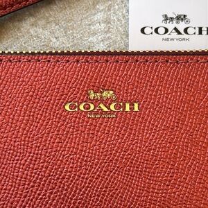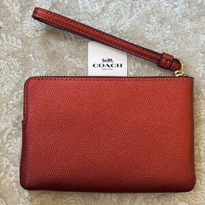 Brand New Coach Genuine Leather Wristlet Metallic Clay Red Crown Zippered Clutch