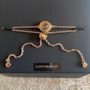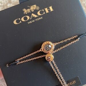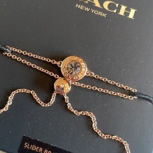 Brand New Coach Open Circle Slider Bracelet Rose Gold Glass Stone