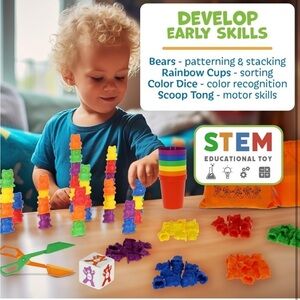 Brand New Colorful Rainbow Counting Learning Toy Bears Cups Scoop Stem Stacking. Non toxic/BPA free. Fine motor skills, mathematics, sorting, color recognition — great for preschoolers & young children!