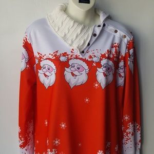 Women's Cowl Neck Christmas Santa Claus Tunic Sweatshirt Dress Size XS