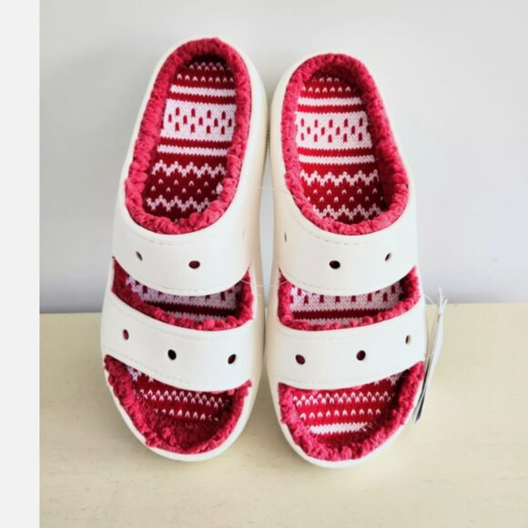 Brand New Crocs Classic Cozy Sandals Fuzzy Slippers Holiday Sweater Men's 11
