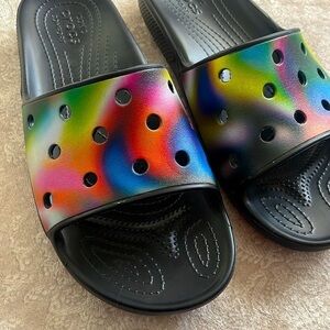Brand New Crocs Mens Solarized Classic Slide Sandal Colorful Tie-Dye Large Strap