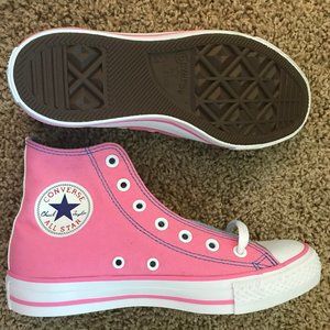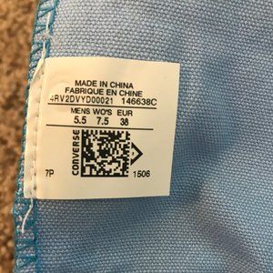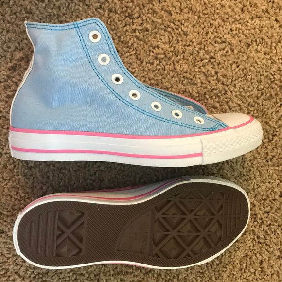 Custom Chuck Taylor All Star Converse. Never before worn! The light blue & pink style super cute with shorts/jeans and a solid color top! The right shoe is missing a shoelace.