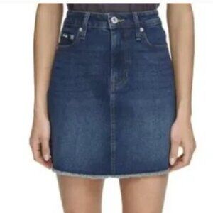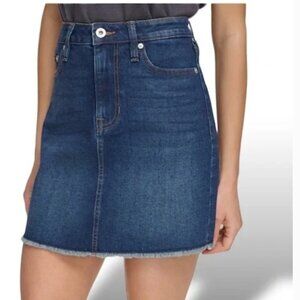 Brand New DKNY 17" Denim Skirt with Frayed-Hem.