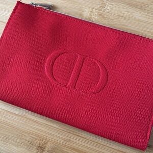 Brand New Dior Red Zippered Beauty Pouch 100% Recycled Materials in Box. Beautiful makeup bag or pouch for anything!