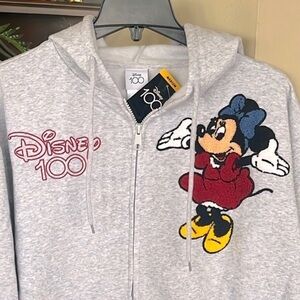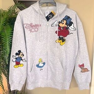 Brand New Disney 100 Heather Gray Zippered Hoodie Sweatshirt Minnie Mickey Bambi