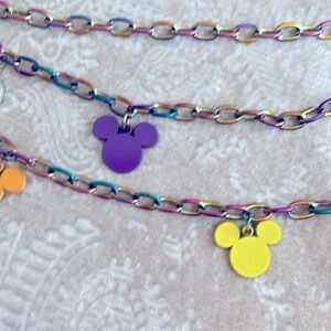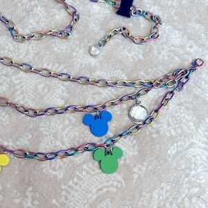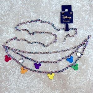 Brand New Disney Buckle-Down Mickey Mouse Colorful Rainbow Charm Metal Chain Belt. Women’s size M/L - 45”. So pretty! Perfect for your next trip to the parks!
