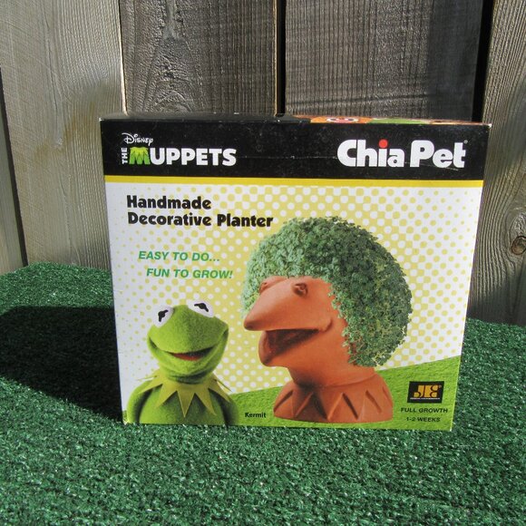 I am selling a Brand New Disney The Muppets Kermit The Frog Chia Pet. It is brand new and has never been used. The figure is Kermit The Frog. It comes with the handmade decorative planter (Kermit), chia seed packet, and drip tray.