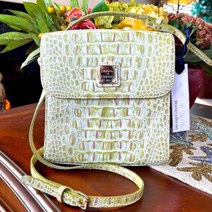 Brand New Dooney & Bourke Crocodile Embossed Leather Green Crossbody Purse.