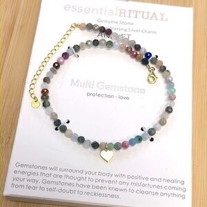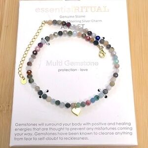 Brand New Essential Ritual 18K Gold Plated Sterling Silver Genuine Stone Anklet. No box. Gorgeous beaded multi gemstone design for protection & love. Dainty heart charm.