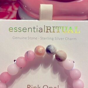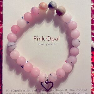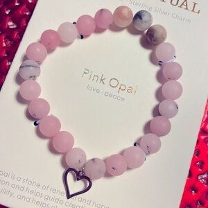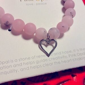 Brand New Essential Ritual Genuine Pink Opal Sterling Silver Heart Bead Bracelet. No box. Pink Opal is a stone of renewal and hope. It is the stone of inspiration and helps guide creativity. It is a stone of tranquility and helps clear the heart chakra. Pretty for Valentine's Day!