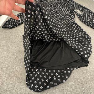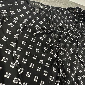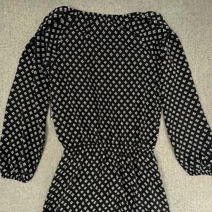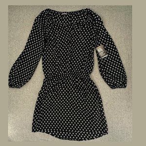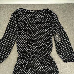 Brand New! Express Dress Black & White Small Neckline Tie Elastic Waist Balloon