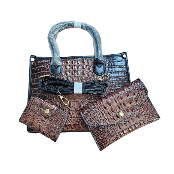 Brand New Faux Alligator Embossed Structured Top Handle Satchel Bag