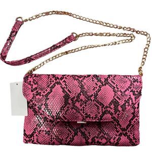 Brand New Faux Pink Snake Skin Crossbody/ Clutch with Gold Chain