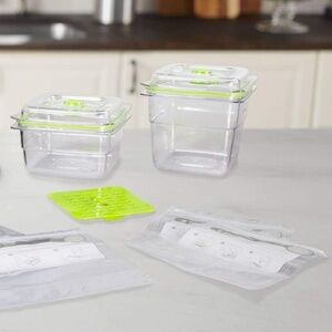 Keep fridge and pantry food fresh up to two times longer (when compared to other non-vacuum storage methods) with the new FoodSaver bags & containers. You can easily and conveniently vacuum seal FoodSaver Fresh Containers and Vacuum Zipper Bags for storage of everyday foods, leftovers and prep-ahead ingredients. Enjoy fresh food taste and reduce food waste when you preserve your food with the FoodSaver bags & containers.