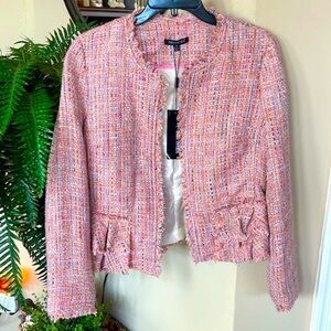 Brand New For Cynthia Pink Tweed Preppy Ruffle Blazer Lined Spring Suit Jacket. Women’s size Medium. Dress up or down. Absolutely stunning!
