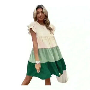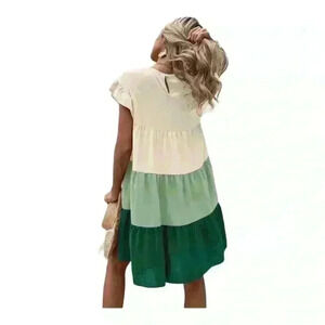 Brand New Forest Green, Light Green and White Three-Color Patchwork Doll Dress