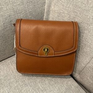 Brand New Fossil Ainsley Eco Leather Small Flap Crossbody In Brown With Tag