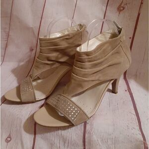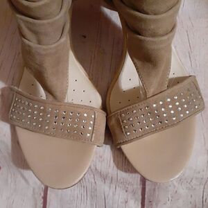 Brand New GEOX Respira Taupe Suede T-Strap Heeled Sandals sz 9.5-10M/40 Ret $189