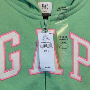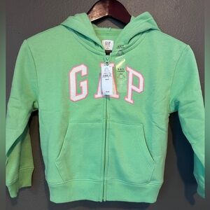 Brand New Gap Girls Zip Up Hoodie Size Small 6/7 Green with Pink Letters NWT